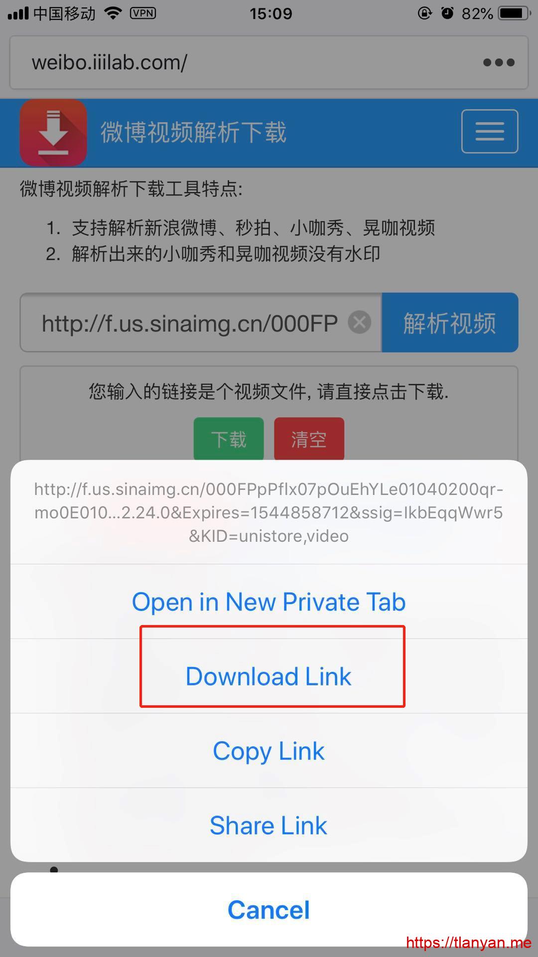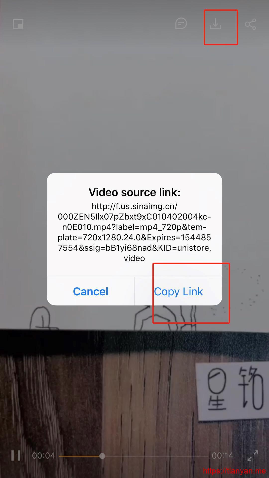 - 找到视频的网页地址:微博点分享按钮,选择“Safari中打开”,复制地址栏的网址;微博国际版点视频右上角的下载按钮,复制链接;twitter选择“复制链接”;本人只安装了微博国际版和twitter,截图如下:微博国际版: