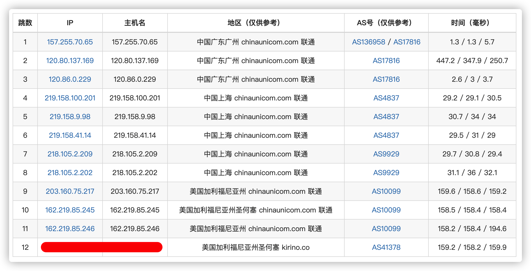 白丝云联通精品大陆优化BGP套餐去程路由总结:电信联通去程走9929,移动去程经香港走NTT。