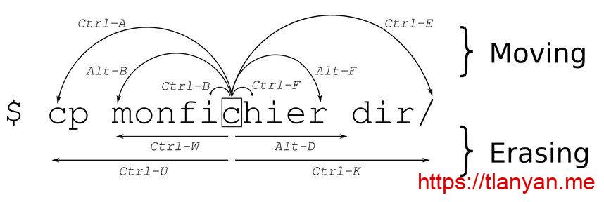 今天敲命令行时想在单词间移动,竟然不记得快速移动的快捷键。试了Ctrl + W和Ctrl + B/F均不凑效,于是怀念之前某博主分享的终端快捷键说明图。