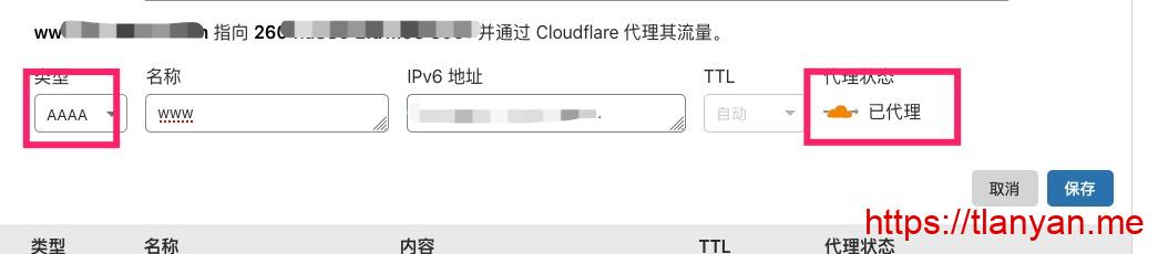 3. 找一家支持只有IPv6的CDN,例如 Cloudflare,设置IPv6解析:
