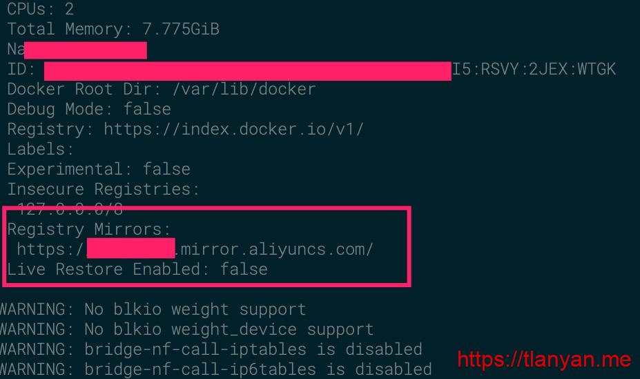 既然公开的加速镜像失效了,那就用私有的。阿里云 的docker镜像加速地址每个用户不一样,滥用的可能性少,而且官方后台提供,应该不会失效。于是就用阿里云的地址来验证一下上面的想法吧。