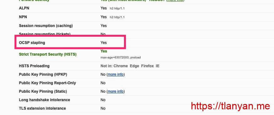 今天在 SSL Labs 网站上检查网站的SSL配置,意外发现OCSP Stapling没有开启:
