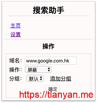 2. 分组管理功能。分组相当于标签功能,可将网址归类到分组里,例如“莆田系”分组存放相关医院站点。同时可禁用/启用分组,批量修改站点行为;