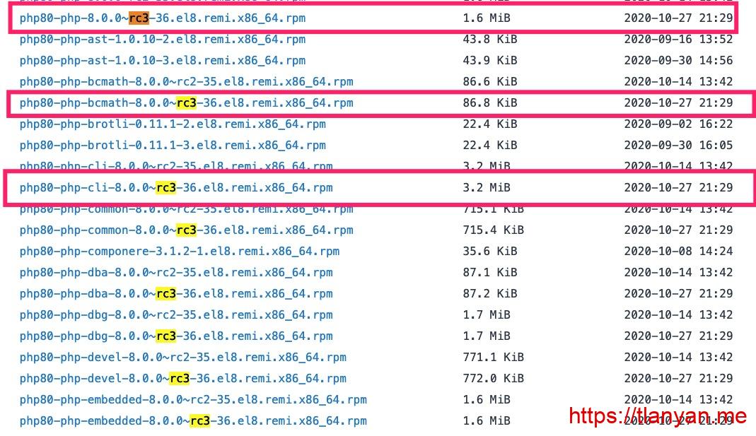 1. 最快速度提供最新版PHP安装包,包括候选版的PHP 8。Remi源的安装包发布时间可能比 PHP官网 发布时间还早,例如最新版的 PHP 7.4.12 和 PHP 8.0 RC3,Remi源的包比官网新闻发布时间都早上一两天: