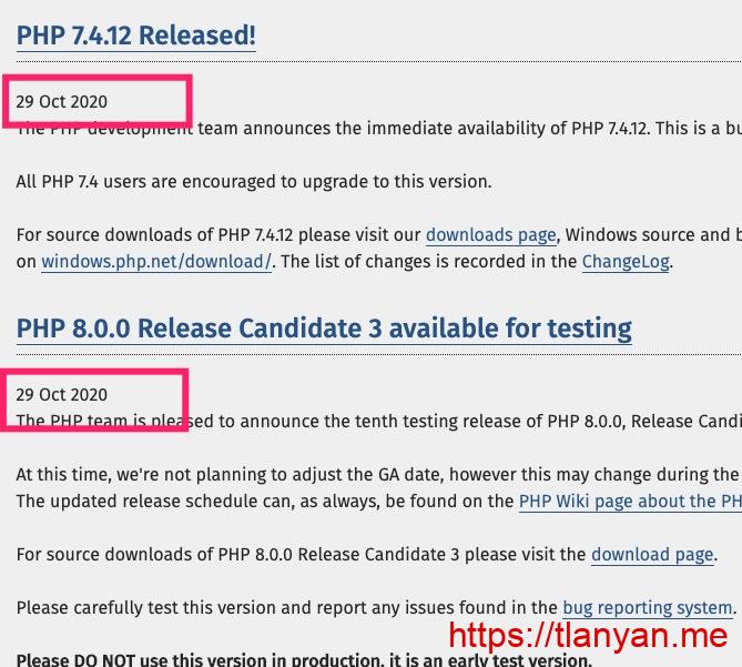 以及最新版PHP 8.0 RC3发布时间:
