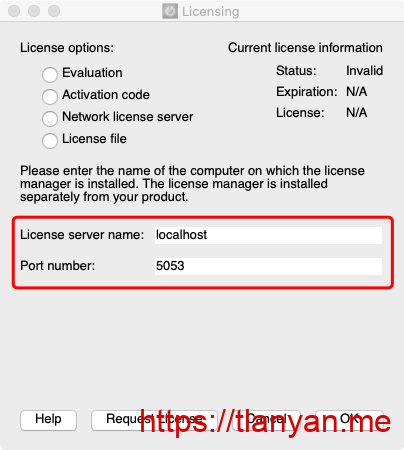 Tecplot 360,在弹出的激活框中选Network license server,在License server name一栏中输入localhost,Port number一栏中填入5053: