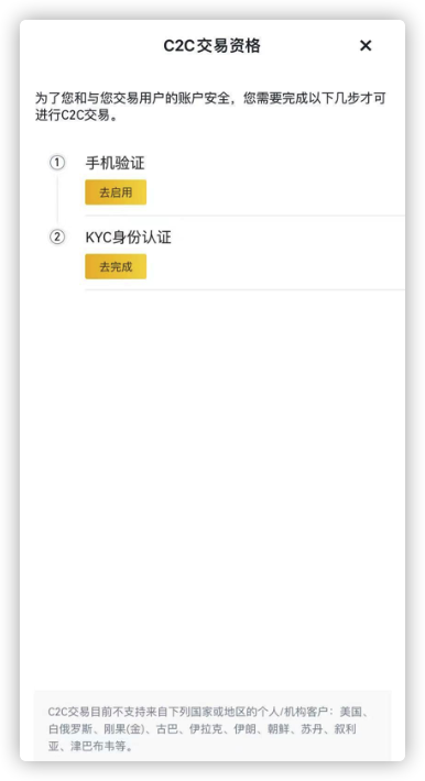 根据各国反洗钱等法规要求,需要先进行KYC认证(身份验证)才能交易,期间会要求上传身份证或人脸识别等操作:
