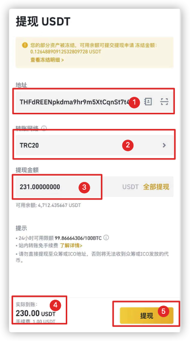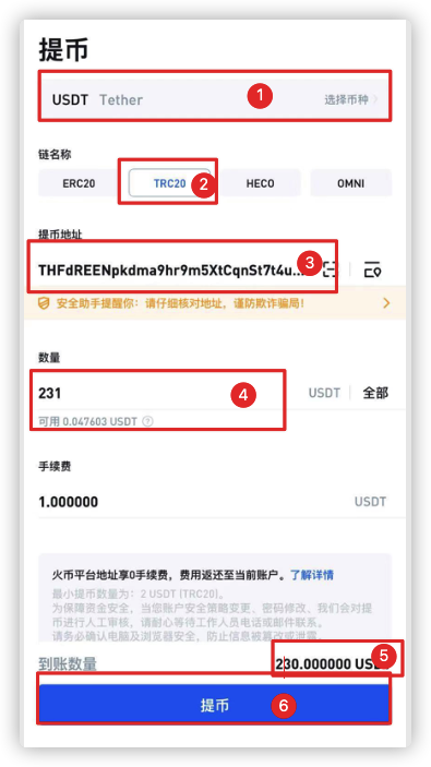 火币提现USDT界面是: