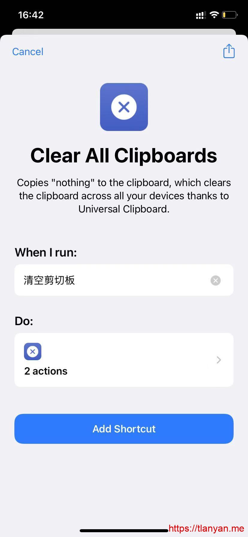 iOS使用快捷指令清空剪切板