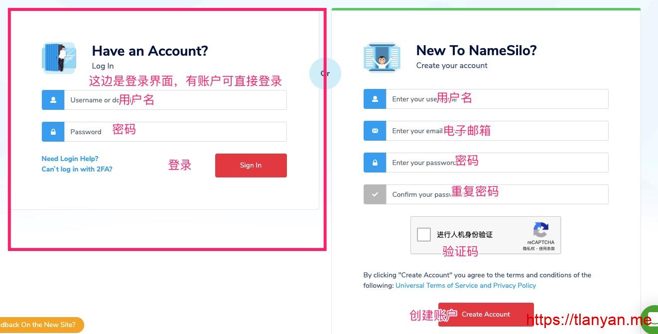 Namesilo注册账户