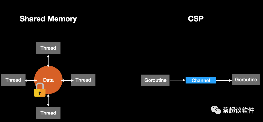 }Go这是利用CSP机制中的channel在生产者和消费者之间传递数据。