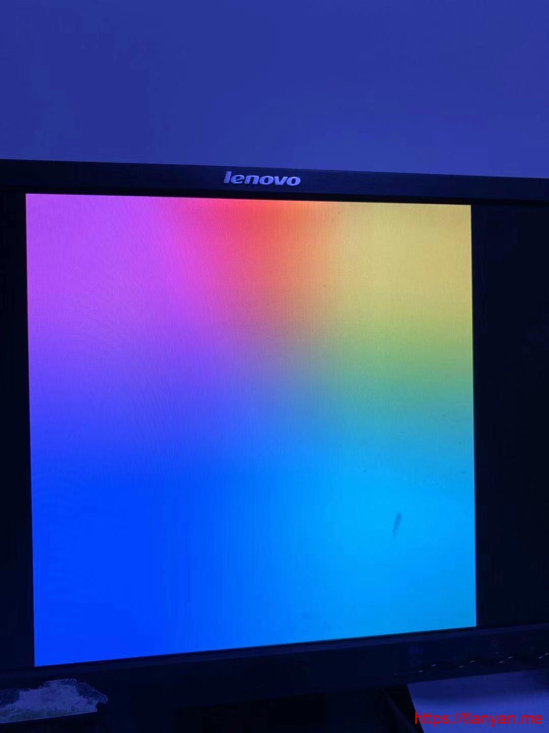 - 树莓派通电,接上键盘鼠标和显示器。注意:micro hdmi接口要用第一个(靠近电源接口那个),否则可能显示器只会出现如下“彩虹”画面: