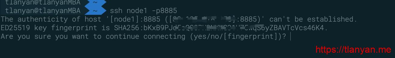 SSH采用Trust On First Use方式避免中间人攻击,ssh第一次连接新主机是会出现主机公钥指纹确认提示: