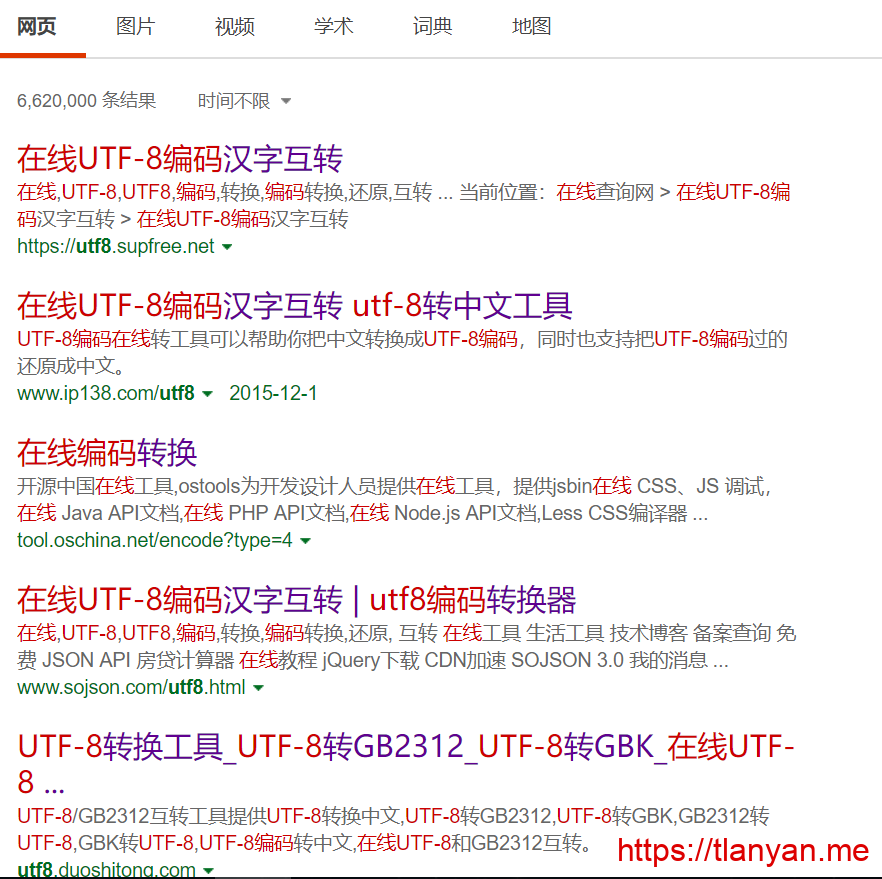 想知道某个字符串的UTF8编码,图方便打算使用在线工具。坑爹的是,号称“UTF8汉字互转”的网页几乎全是字符串和unicode码点互转,并不提供与UTF8编码互转功能。没搞懂unicode码点(code point)和UTF8编码的关系,还大言不惭的说UTF8编码,真让人无语。