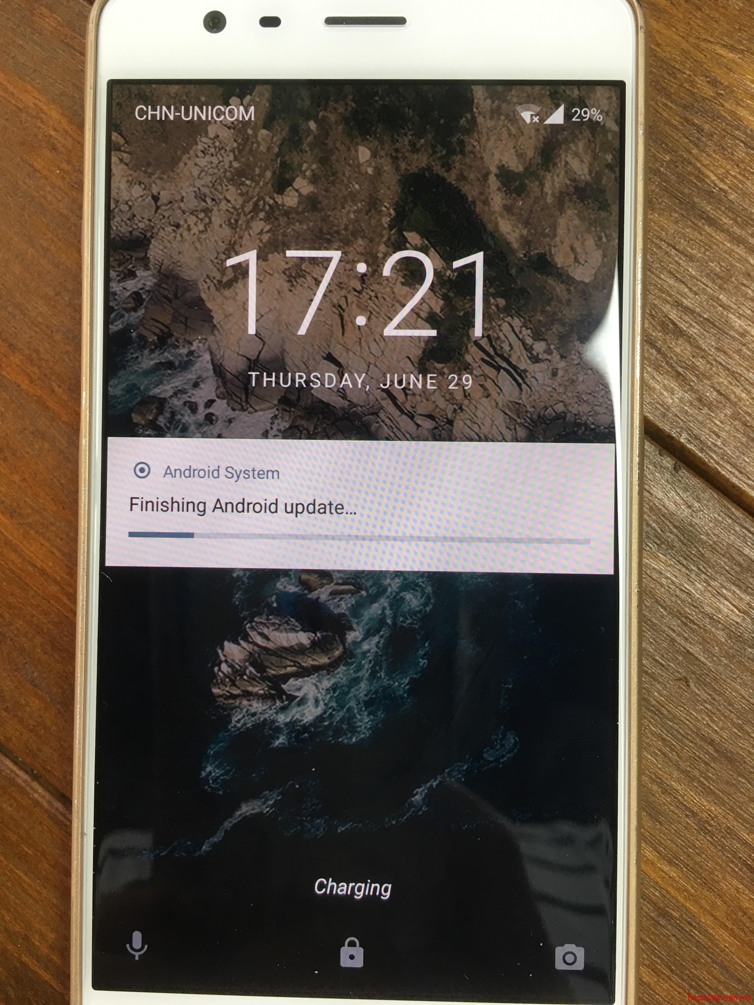 - 更新完成后手机会自动重启。首次重启会进行一些初始化设置和用户数据检查等操作,故而耗时会稍长。重启完成后的界面如下: