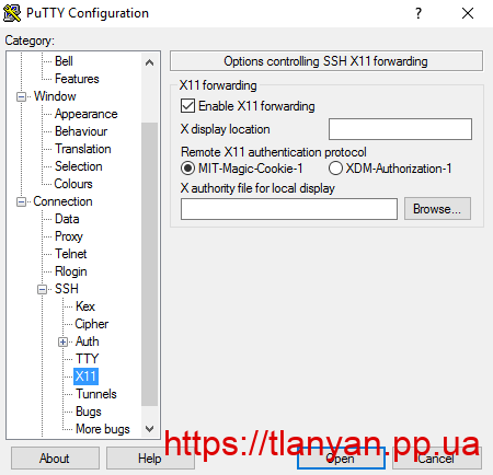 3. GUI形式的ssh客户端,需要在设置中开启X11 Forwarding。例如putty上的设置: