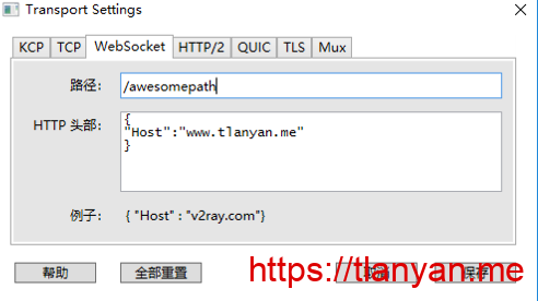 "Host":"你的域名,例如tlanyan.pp.ua"