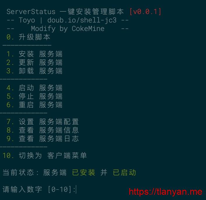 如果你的服务器上已经有其他网站运行,安装过程中建议选N,然后自行配置。一种配置方法是使用一个单独的监控域名,例如 serverstatus.tlanyan.pp.ua ,以Nginx为例,那么只需要在 /etc/nginx/conf.d 目录下新增一个配置文件: