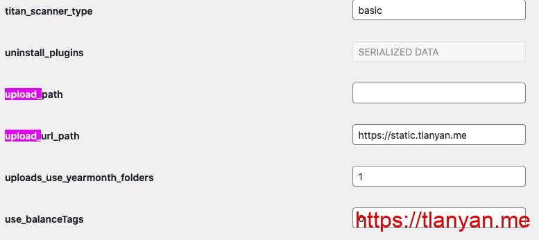 1. 登录网页后台,打开 https://你的域名/wp-admin/options.php(只能手动在浏览器打开),找到 upload_path 和 upload_url_path 两个选项,第一选项用来设置上传图片存放的文件夹(默认是 wordpress安装目录/wp-content/uploads),第二个是设置文件的域名: